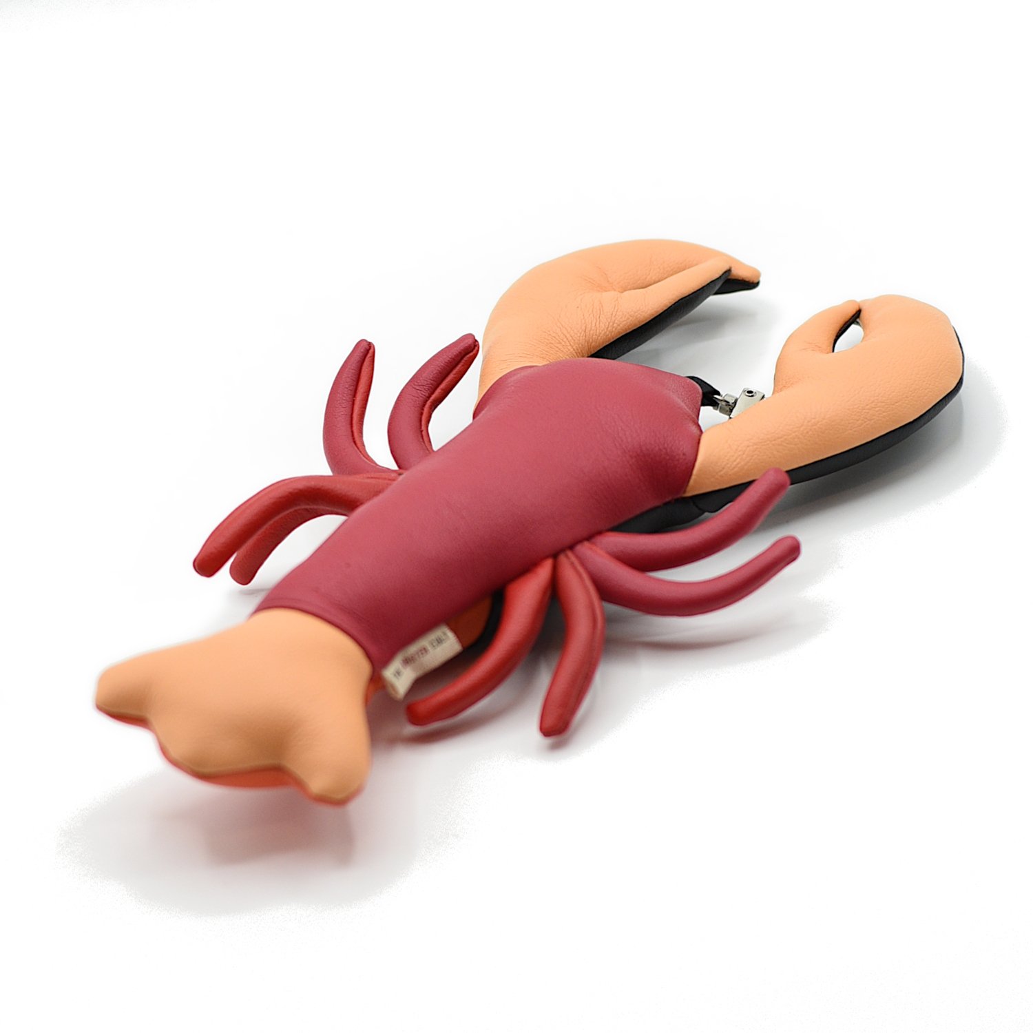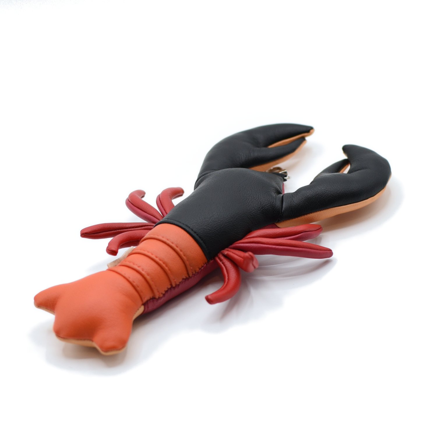 spicy-chili-coloured crayfish keyholder made from faux leather sofa samples, filled with recycled polyester.